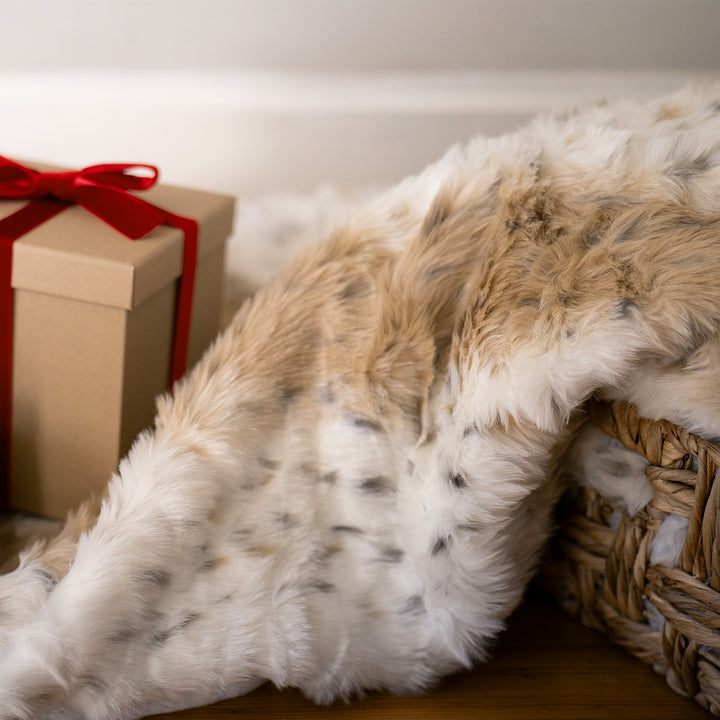 Wildly chic, irresistibly soft. Our PoshPelts® Lynx Faux Fur Throw brings a luxe lodge vibe to any space with creamy white and warm tan streaks dusted in soft grey spots—an elegant nod to the striking Lynx pattern. Extra-plush and beautifully draped, it turns downtime into an indulgence.